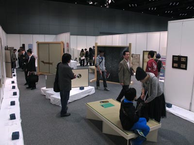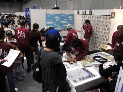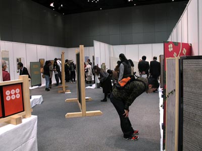 今回も昨年同様、大阪府職業能力開発協会主催『おおさかものづくりコレクション2015』の協賛参加での出展となりました。ものづくりの楽しさを体感していただこうと、さまざまな業種の体験ができるブースが沢山並んでおり、当組合では「ミニふすま製作教室」と「ミニ屏風教室」を開設しました。ご来場いただいた方々にもお喜びいただけたようで、子どもも大人も楽しめる空間というのはとてもほほえましいモノです。今年は「着物と帯のリメイク表具」をご提案し、こちらもお客様よりさまざまなご質問を受け、大変好評でした。ご来場いただきました皆様、お足元の悪い中ご来場いただき、ありがとうございました。